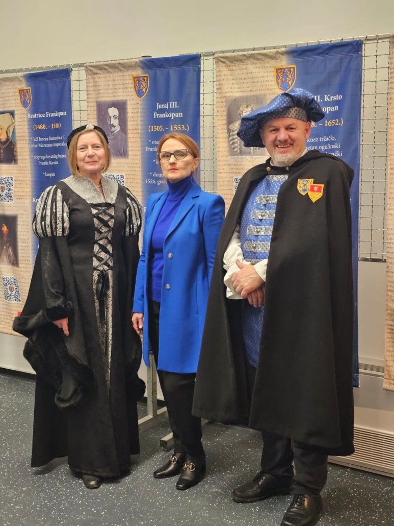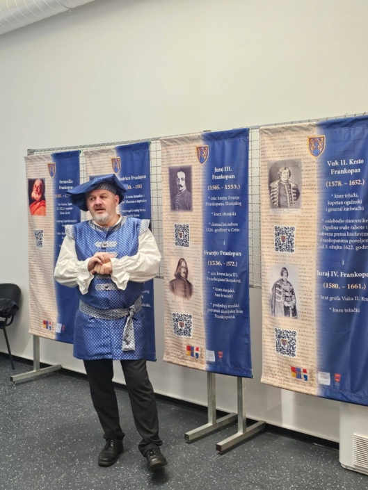 Stoga smo izradili još jedan set postera koji će biti putujućeg karaktera i koji je već jučer krenuo na put. I to u Valpovo, na istok Hrvatske. Zahvaljujući Tomislavu Beroniću, autoru više knjiga o Frankopanima, našem dugogodišnjem suradniku i inicijatoru ove izložbe, Frankopani će u sljedeća 4 tjedna biti izloženi u valpovačkom Edukacijsko-interpretacijskom centru Matije Petra Katančića. Nadamo se da će izložba privući zasluženu pažnju i da će pomoći u naglašavanju važnosti porodice Frankopana u hrvatskoj povijesti.