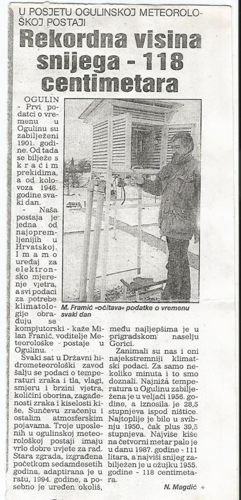 Zahvaljujući predanom radu meteorologa i dugogodišnjem sustavnom bilježenju podataka, Ogulin danas raspolaže vrijednom klimatskom arhivom koja je važna ne samo za znanost, već i za razumijevanje lokalne povijesti i svakodnevnog života.